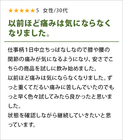 だからこそ、痛みや違和感を感じたらすぐに軟骨成分を摂ることが大切です!