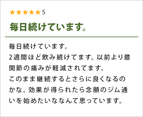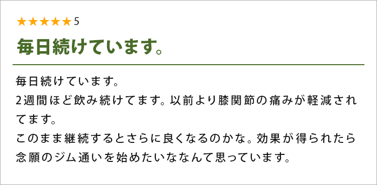 正直、自宅で関節のケアができると思っていませんでしたが、ここまで手軽なら今後も続けます♪